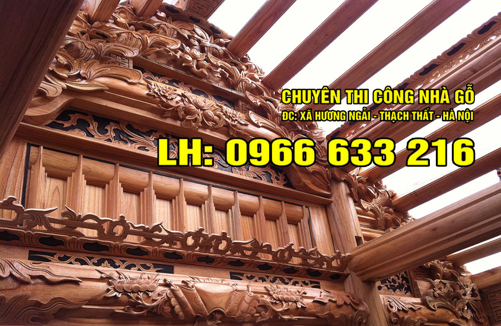 THI CÔNG NHÀ GỖ XOAN 5 GIAN HIÊN THÔNG